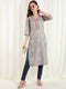 You can stylishly refresh your everyday wardrobe with this Ethnic Printed Grey Straight Kurta With Lace. It has wonderful prints, a nice tone accent, v-neckline with pleated details, red lace embellishments, and breathable fabric. The appearance is completed by its straight fit