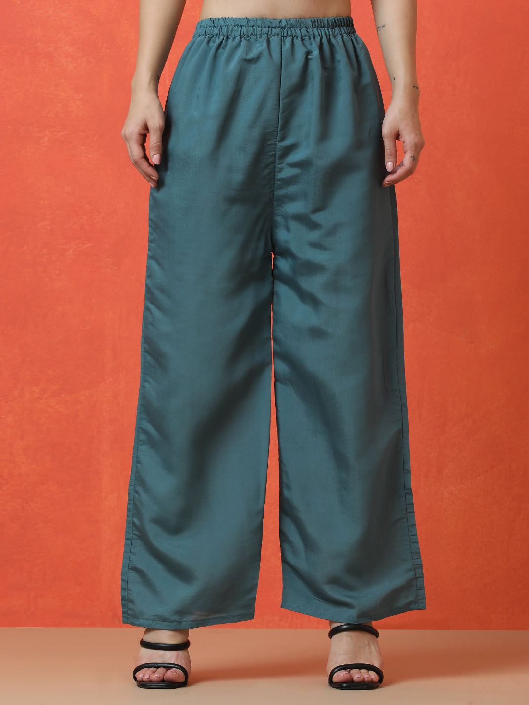 Embrace a comforting style with this Floral Embroidered Silk Blend Blue Kurta Sets. This A-Line Kurta For Women has a Round Neck, Sleeveless With Beads and Stones. Paired With a Palazzos.