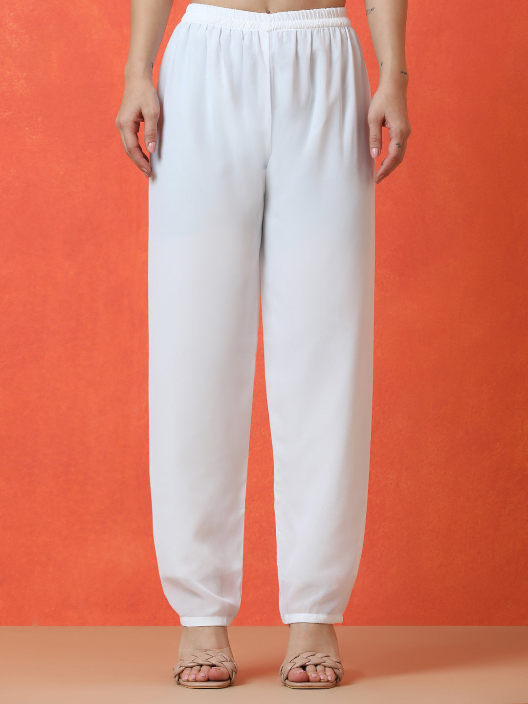 Embrace a comforting style with this Floral Embroidered Poly Georgette White Kurta Sets. This Straight Kurta For Women has a Round Neck, Three-Quarter Sleeves With Thread Work. Paired With a Trousers.