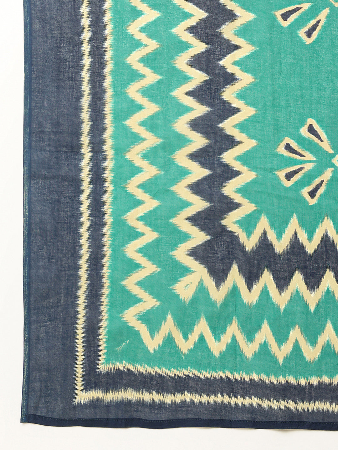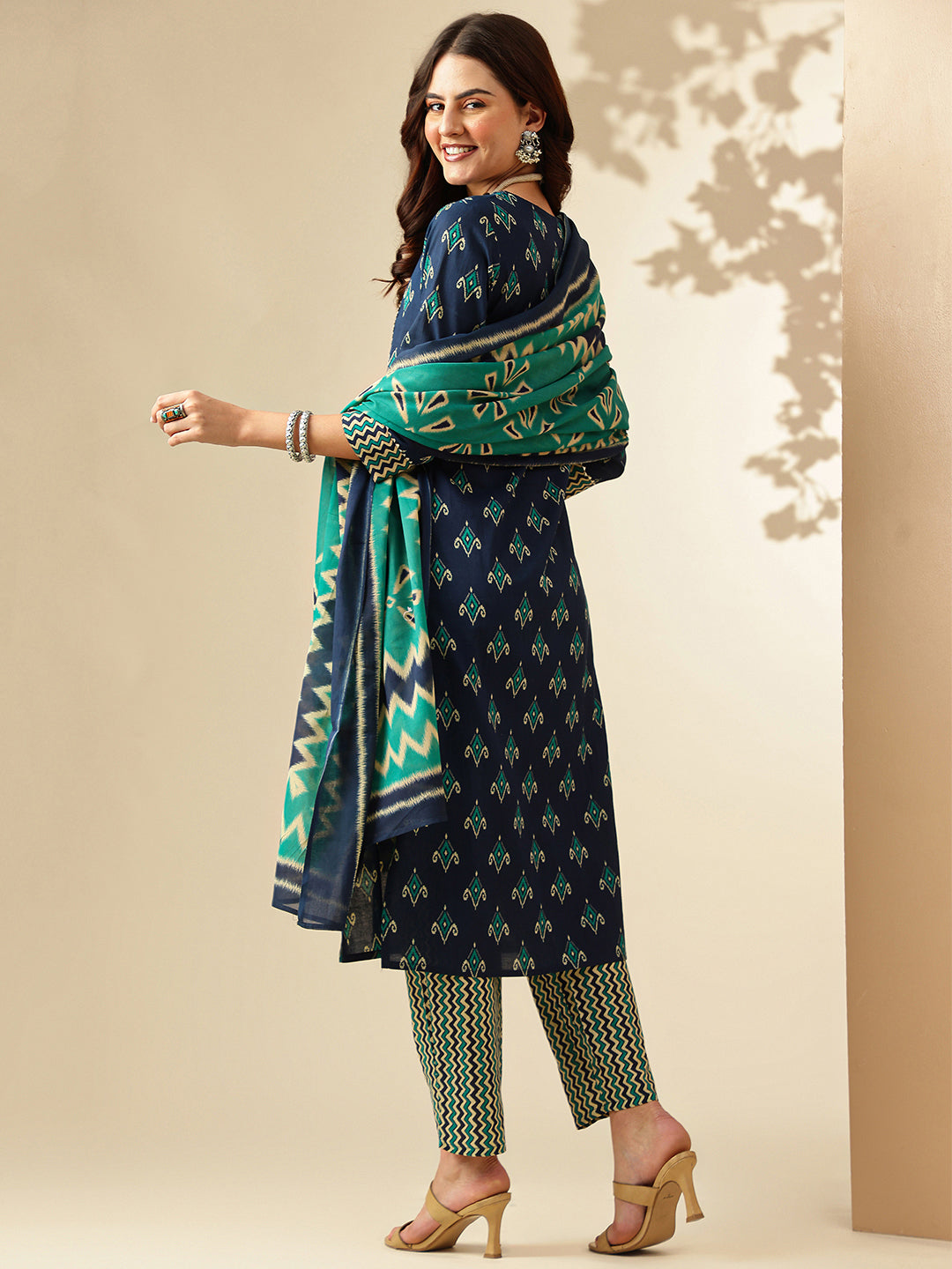 Embrace a comforting style with this Floral Embroidered Pure Cotton Teal Kurta Set. This Straight Kurta For Women has a Round Neck, Three-Quarter Sleeves With Beads and Stones. Paired With a Trousers.