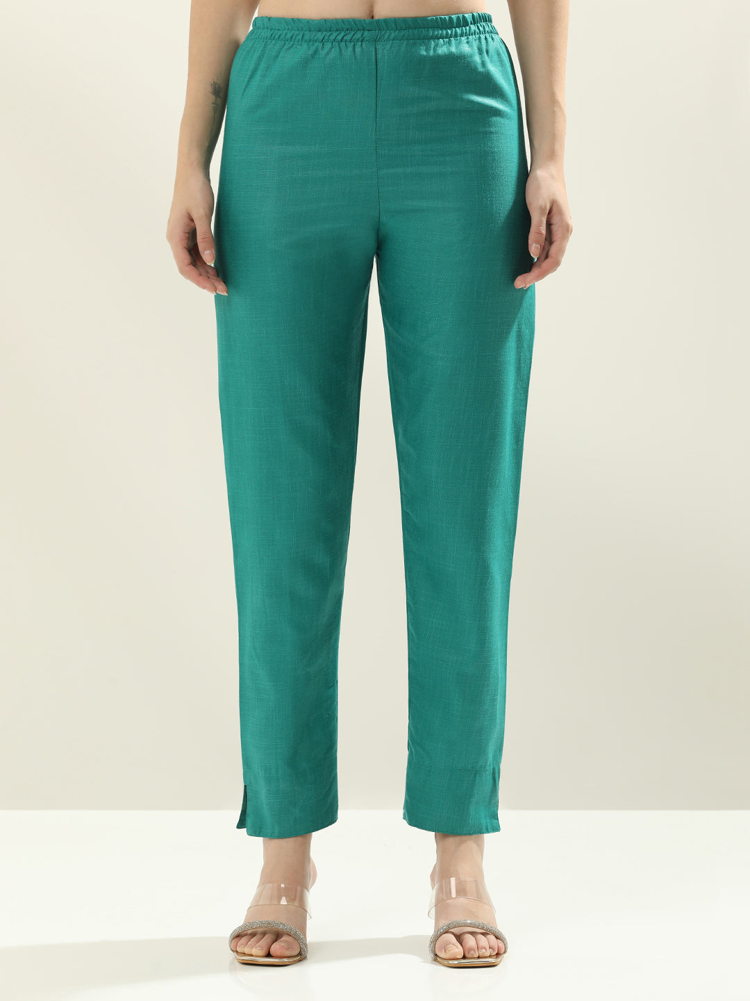 Embrace a comforting style with this Floral Printed Poly Chiffon Green Kurta Set. This Anarkali Kurta For Women has a Round Neck, Long Sleeves With Phulkari. Paired With a Trousers.