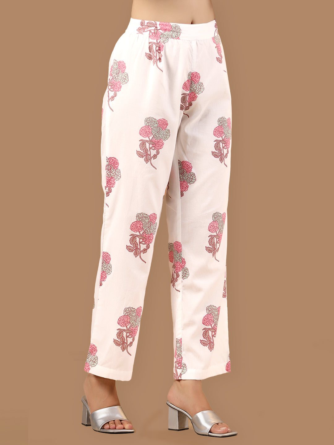 Presenting A Flowy-Floral Bliss. This Green Floral Printed Cotton 3-Piece Co-Ord Set Comes With A Crop Top, Pants And A Shrug. The Green Floral Printed Top Has A Round Neckline, Is Sleeveless And Has White Potli Show Buttons. The Shrug Has Bell Sleeves, Pleated Gatherings And A Front Drawstring With Tassels. Paired With Regular Printed Partially Elasticated Pants
