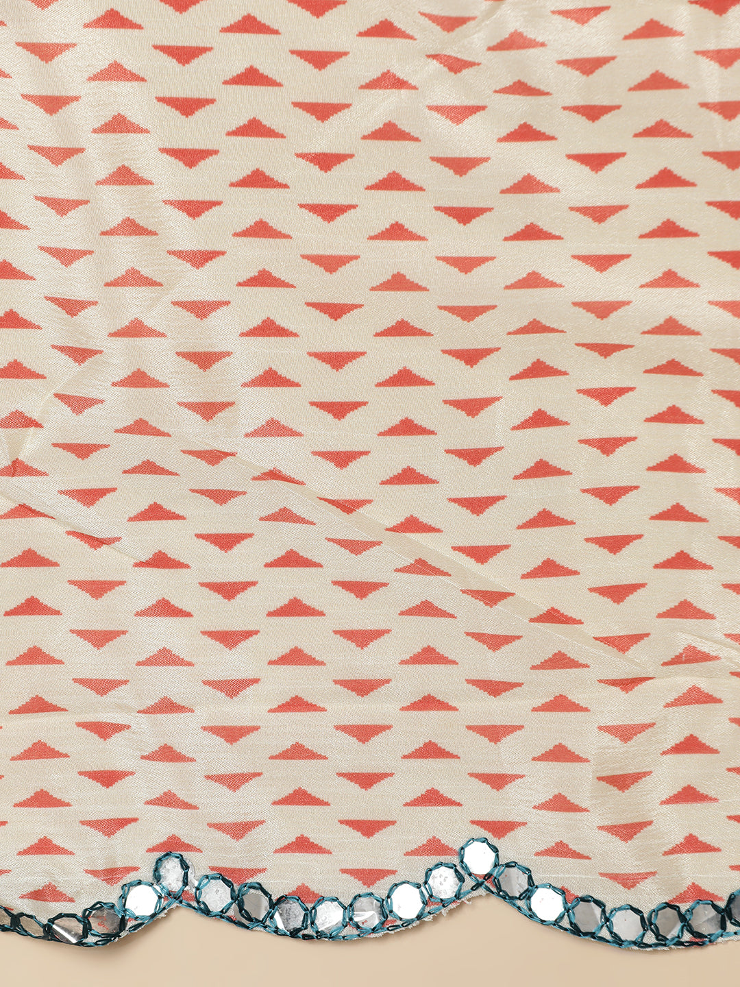 Embrace ethnicity in this charming Tie-Dye Printed Mirror Work Satin Saree. It has tie-dye prints, mirrorwork embellishment, scallop border and satin fabric.