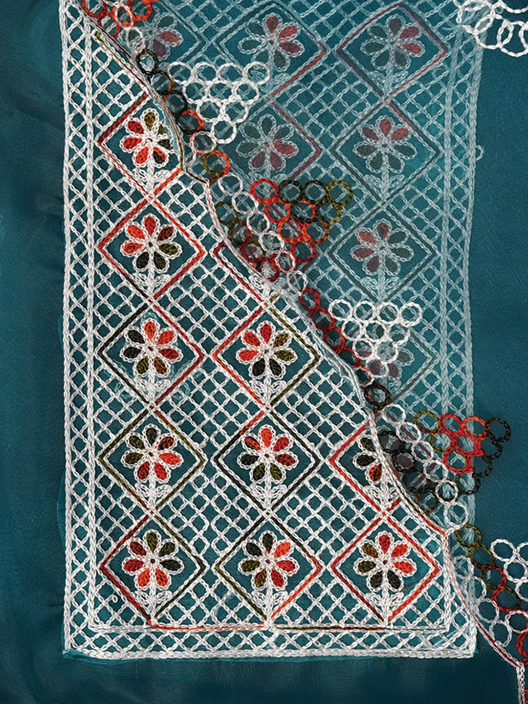 Green Zari Embroidered Organza Dress Material with Dupatta