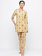 Beige Printed Sleepwear Consist Of Straight Short Kurta & Pants