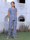 Blue Coloured And Zigzag Print Sleepwear Consists Of Shirt And Pyjamas Blue Zigzag Printed Shirt Has A Lapel Collar,Pocket Detail ,Short Sleeve And Button Closureand Contrast Pipin A Pair Of Blue Zigzag Printed Pyjamas, Has A Inner Drawstring Closure And Elasticated Belt With Two Pockets