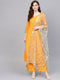 Mustard & Grey Yoke Design Kurta With Palazzos & Net Dupatta