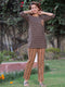 Olive Printed Sleepwear Consist Of Short Kurta And Pyjamas Olive Printed Kurta Has A Round Neck,Placket With Button, Pocket Detail,Three-Quarter Sleeves, Straight Hem, Side Slits A Pair Of Contrast Mustardprinted Pyjamas With Side Pocket,Back Elastic