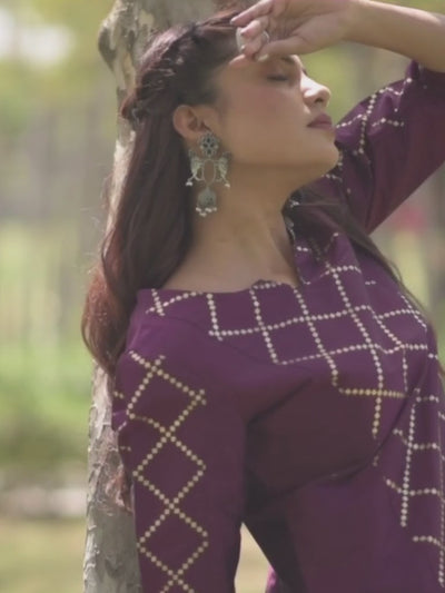Purple & Gold Printed Silk Blend Kurta With Pants