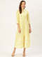 Yellow with white khadi printed cotton dress with potli buttons detailing on front panel, gathers detailing on front, side pocket, front slit.