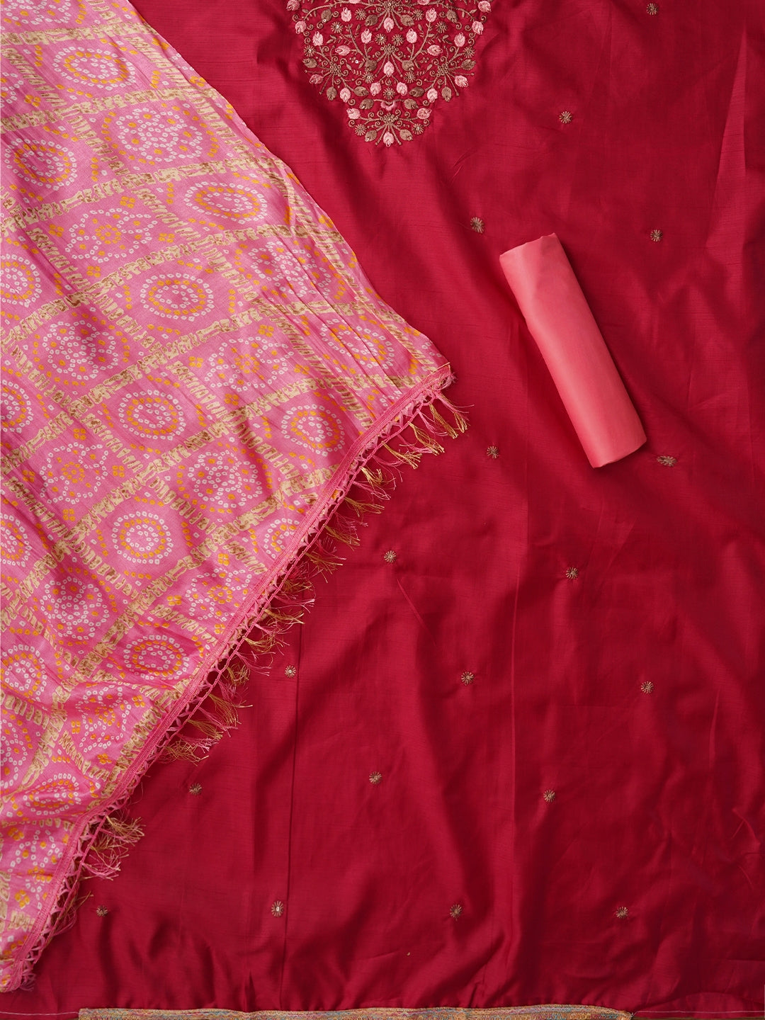 Magenta Zari Embroidered Pure Cotton Dress Material with Dupatta