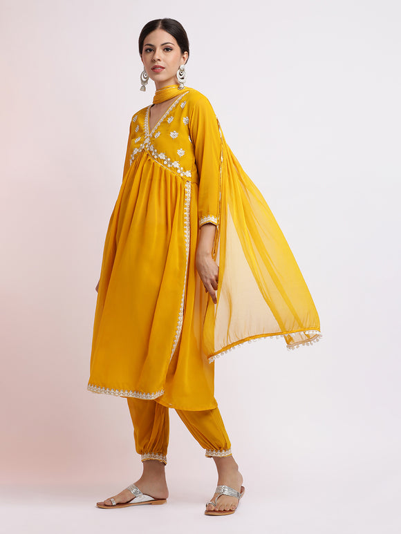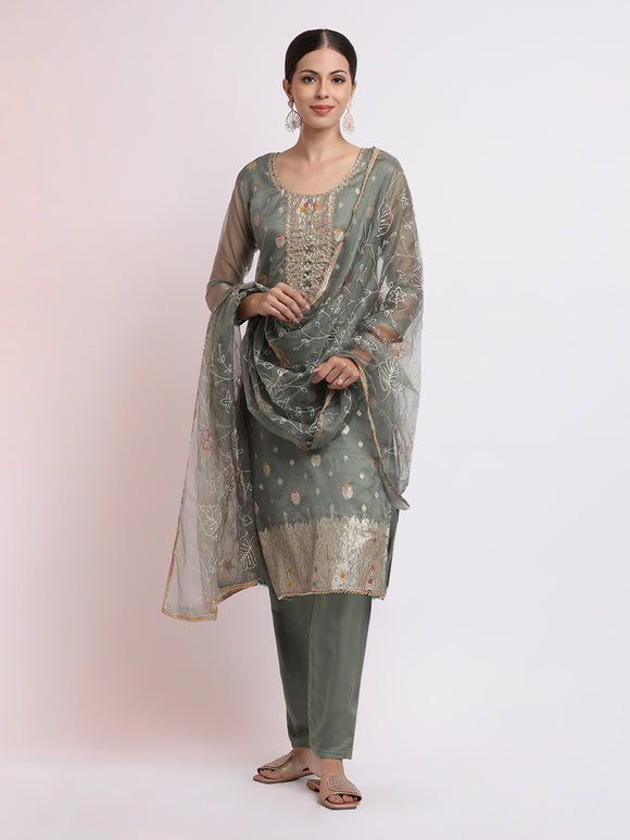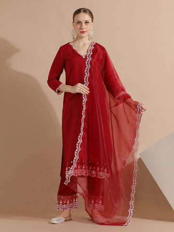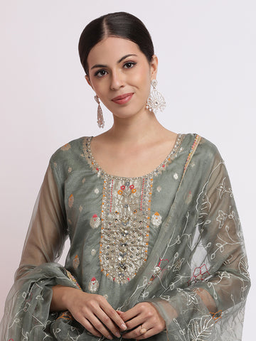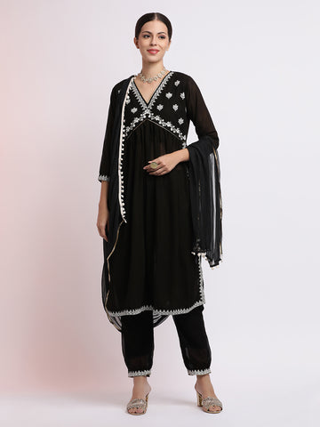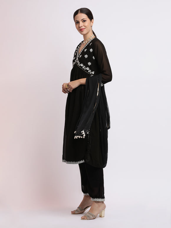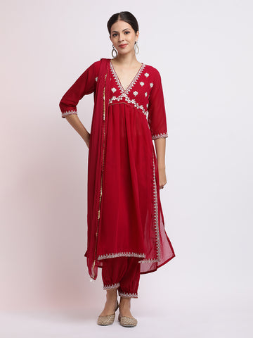 Festive Embroidered Georgette Party Wear Kurta Set With Dupatta