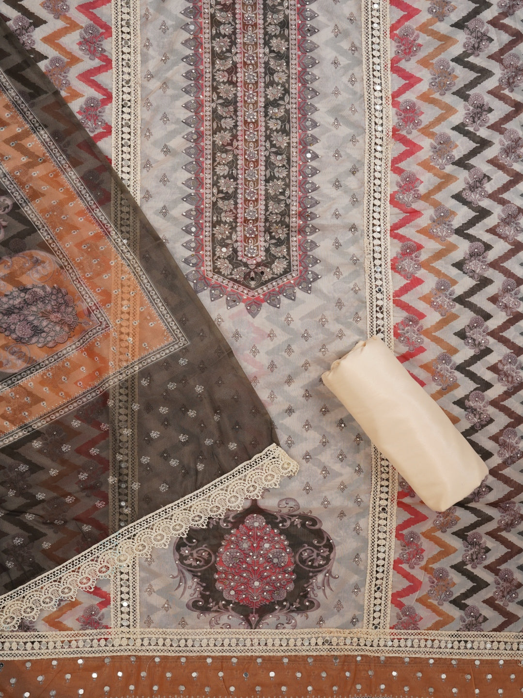 Multicolor Floral Printed Mulitcolor Organza Dress Material With Dupatta