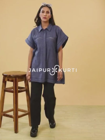 Wrap yourself in this cosy Navy Blue Woolen Poncho Top. This relaxed-fit woolen top features a collared neck, lace details and loose sleeves. Style it with some skinny jeans and ankle boots for a classic look.