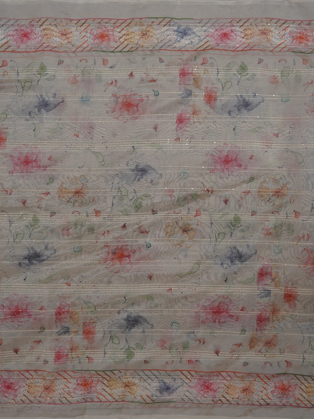 Off White Floral Printed Silk Zari Woven Dress Material with Dupatta