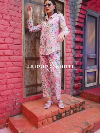 Pink Abstract Print Shirt With Pants Co-ord Set