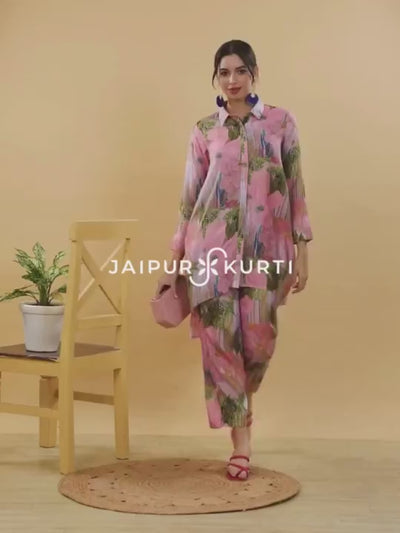 Pink Printed Muslin Shirt With Palazzo Co-ord Set