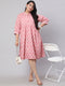 Plus Size Pink Ethnic Printed Flared Dress