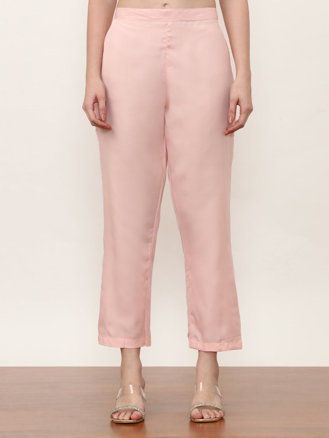 Embrace a comforting style with this Floral Printed Organza Peach Kurta Sets. This Straight Kurta For Women has a Keyhole Neck, Three-Quarter Sleeves With Gotta Patti. Paired With a Trousers.