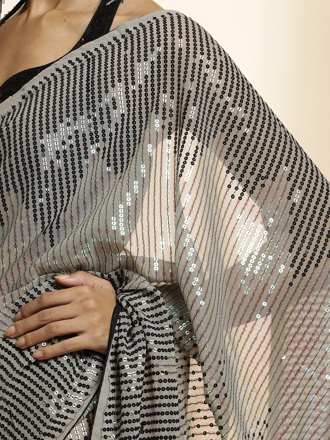 Embrace ethnicity with this Pure Georgette Sequin Work Heavy Saree has sequin embellishments. It is a party wear saree for women.