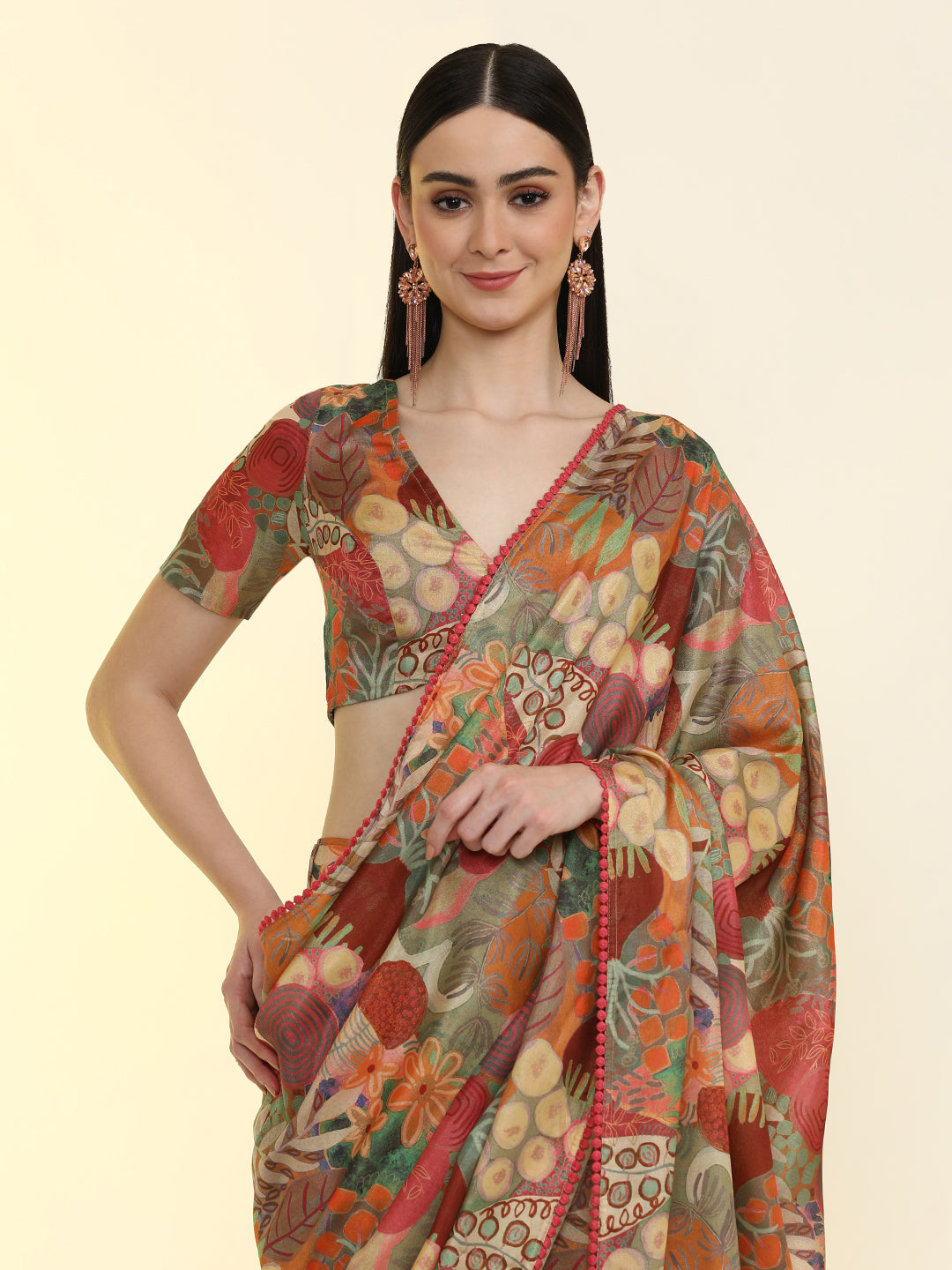 Ready to Wear Tussar Silk Tropical Printed Saree
