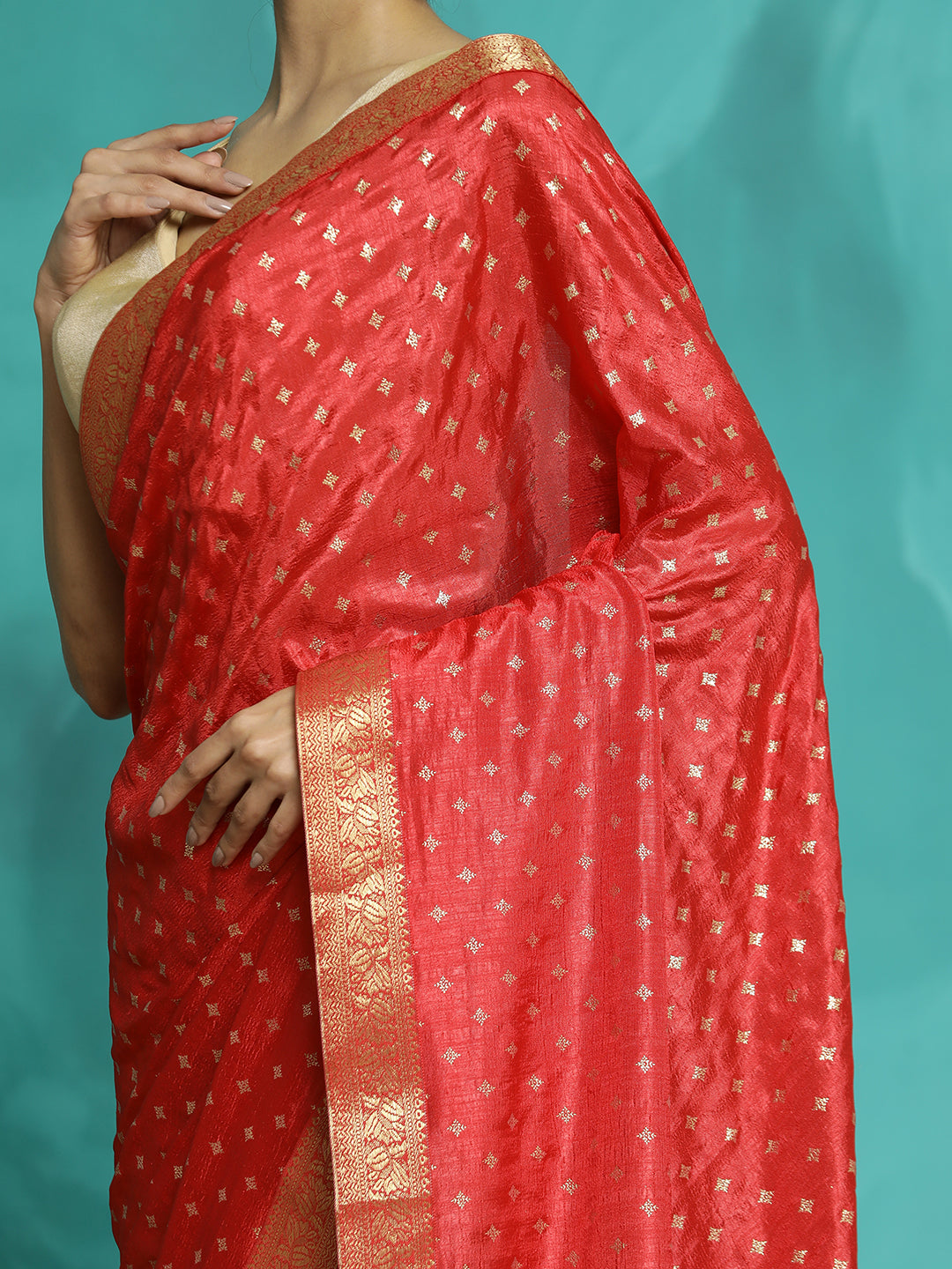Red Silk Blend Floral Zari Woven Heavy Saree