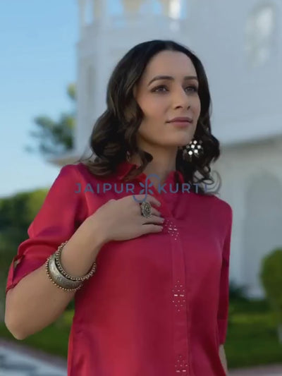 A Rust Silk Fabric Embellished Shirt With Roll-Up Elbow Sleeves Sale price₹ 799 Regular price₹ 2,049Sold outSave 61%