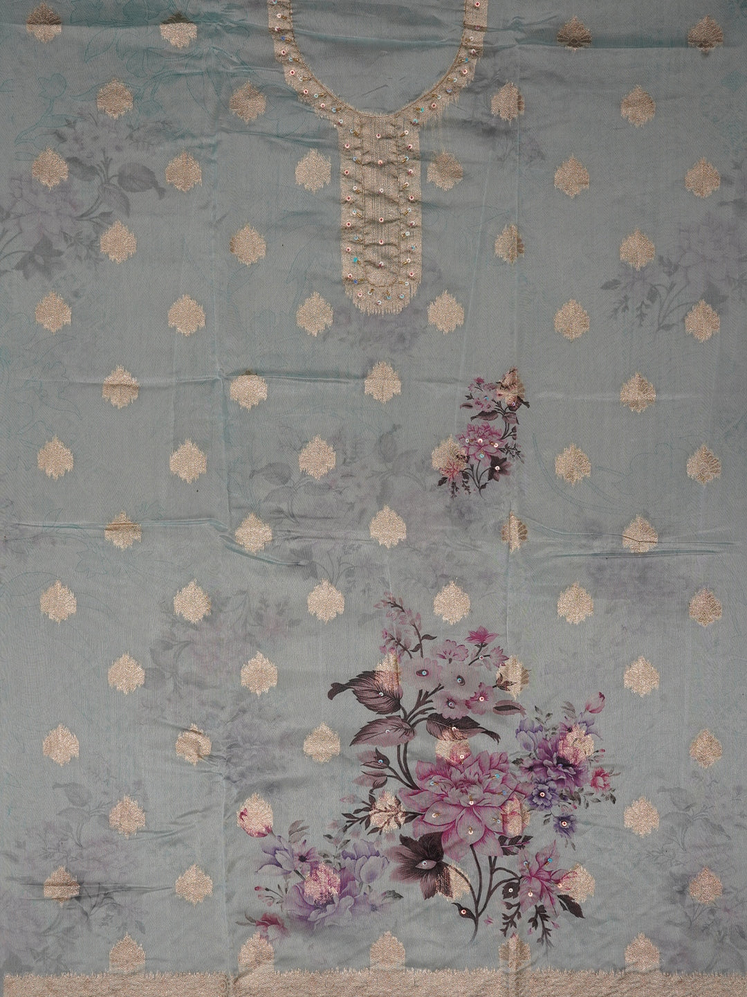 Sea Green Floral Printed Embellished Organza Dress Material with Dupatta