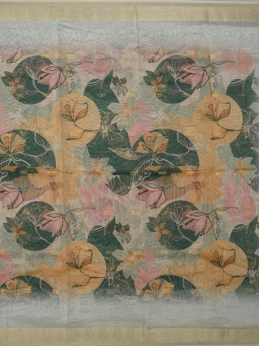 Sea Green Sequin Work Floral Printed Cotton Blend Dress Material with Dupatta