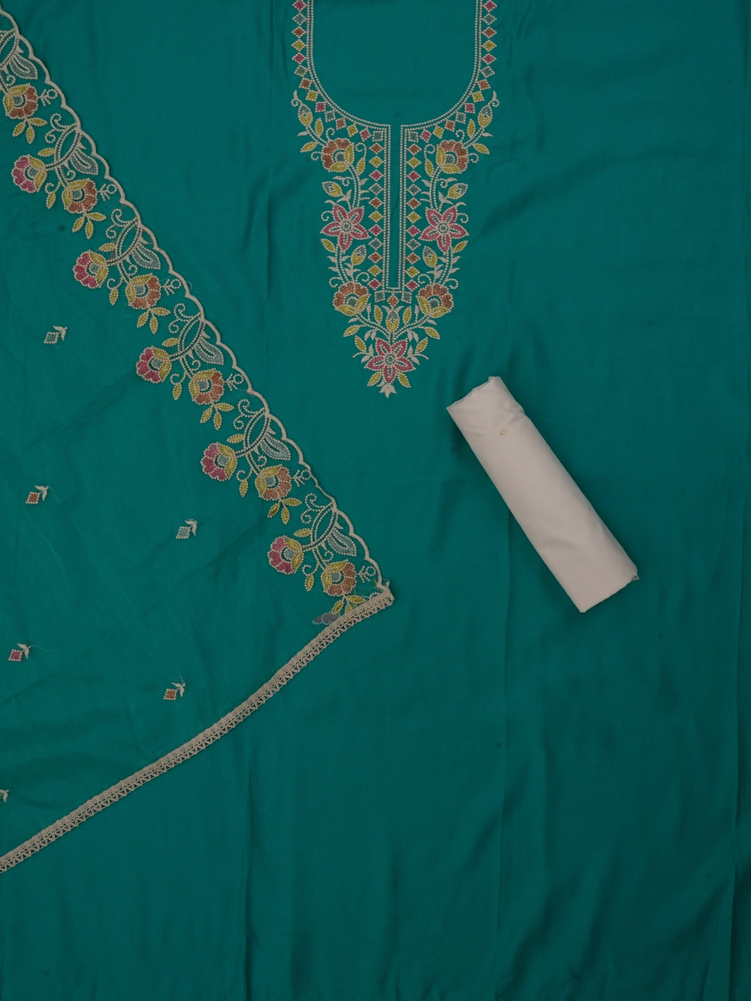Teal Zari Pure Cotton Dress Material with Dupatta