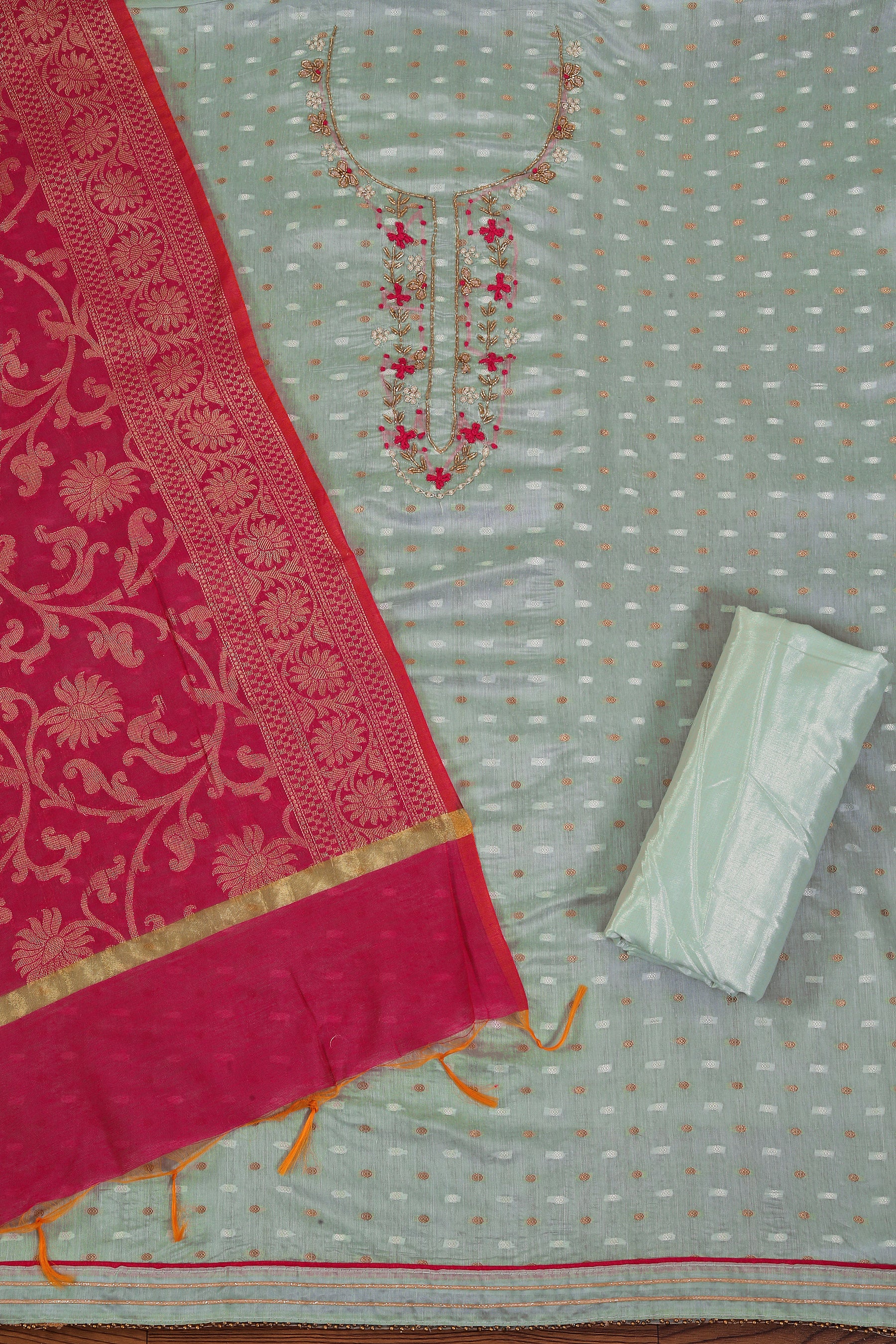 Unstitched Embellished Jacquard Dress Material With Dupatta