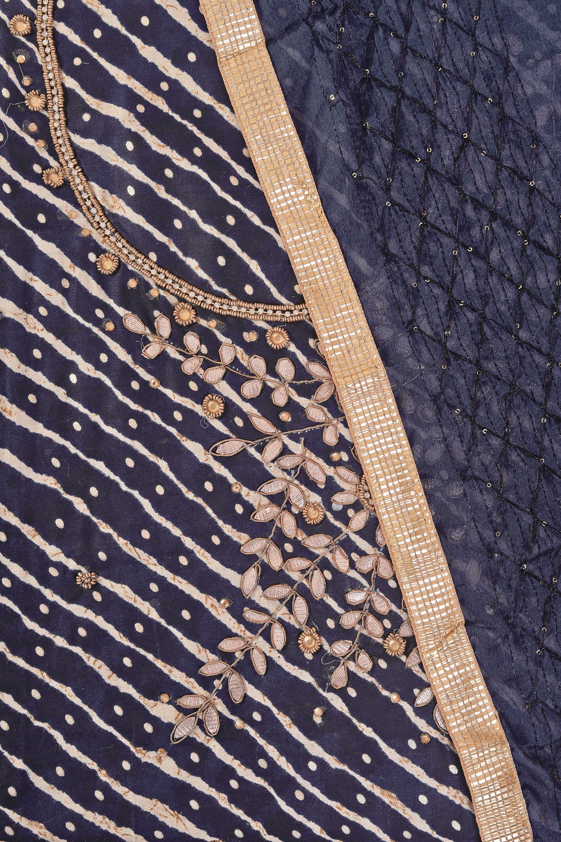Unstitched Floral Printed Gotta Patti Dress Material With Dupatta