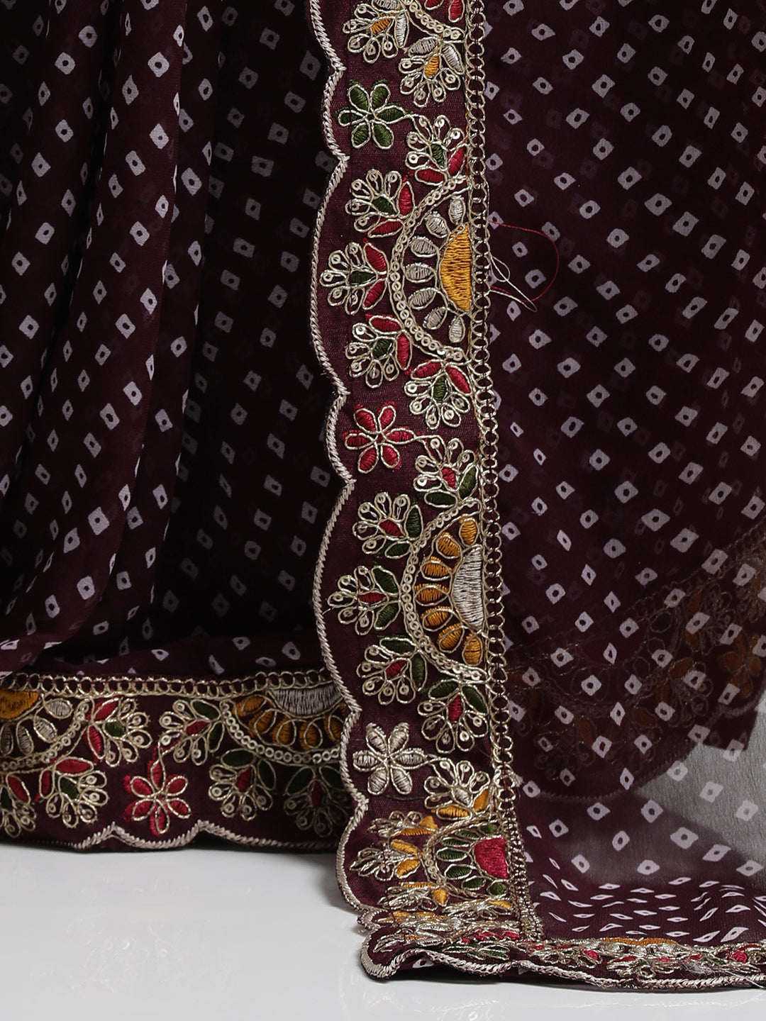 Voilet Traditional Bandhani Embroidered Lace Georgette Saree