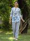 White Cotton Printed Short Kurta Has Round Neck With Slit, Three Fourth Sleeves, Side Slit, Round Hem, Blue And White Loose Pants Has Both Side Pockets And Fully Elastic At Waist.