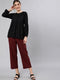 Burgundy Cotton Slub Straight High Rise Bottom-Fold Pants