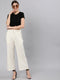 Off White Cotton Slub Flared High Rise Parallel Pants