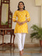 Yellow Ethnic Printed Rayon Crochet Lace Embellished Short Kurti