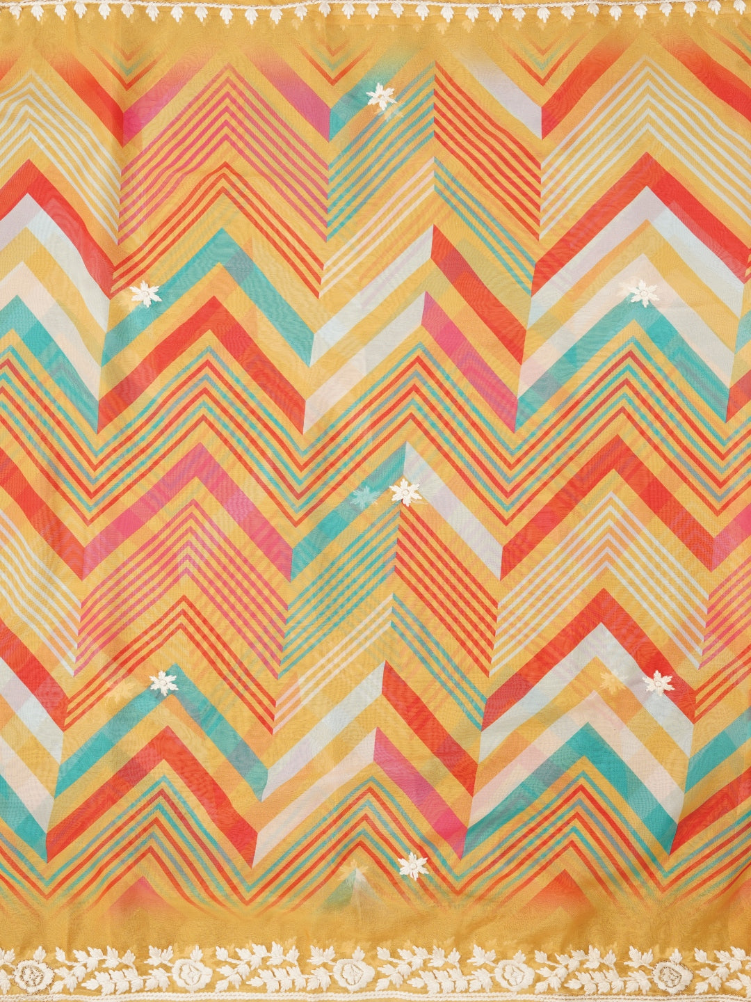 Yellow Lucknowi Embroidered Organza Dress Material with Dupatta