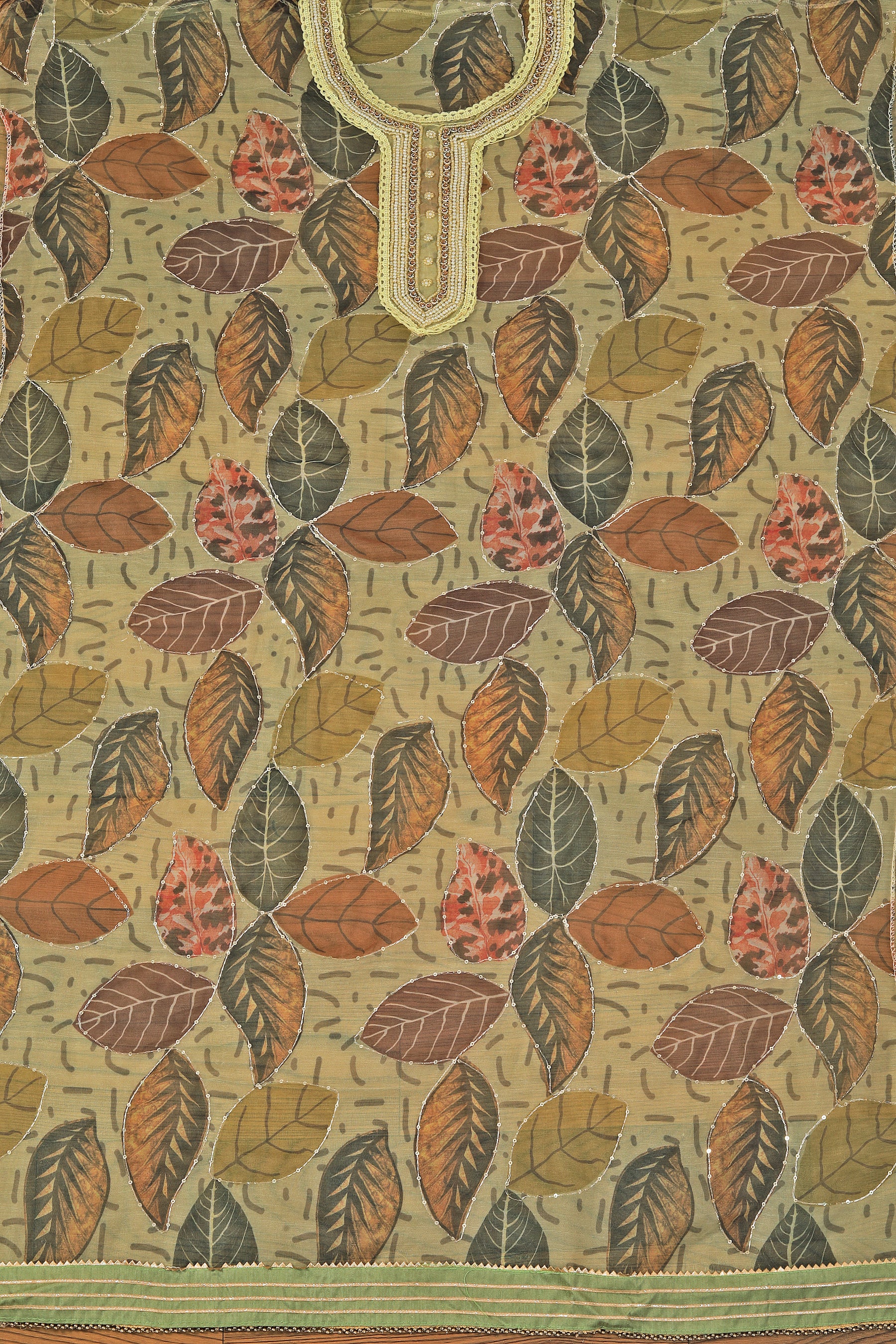Unstitched Embellished Cotton Blend Dress Material With Dupatta is a wardrobe essential. The kurta fabric has embroidered and print details, the bottom fabric is solid and the dupatta has embellished designs.