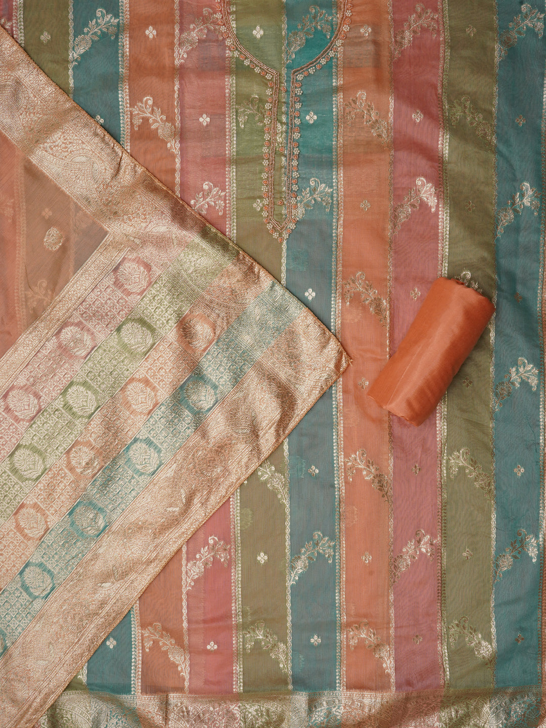 Zari Woven Silk Blend Embellished Dress Material With Dupatta